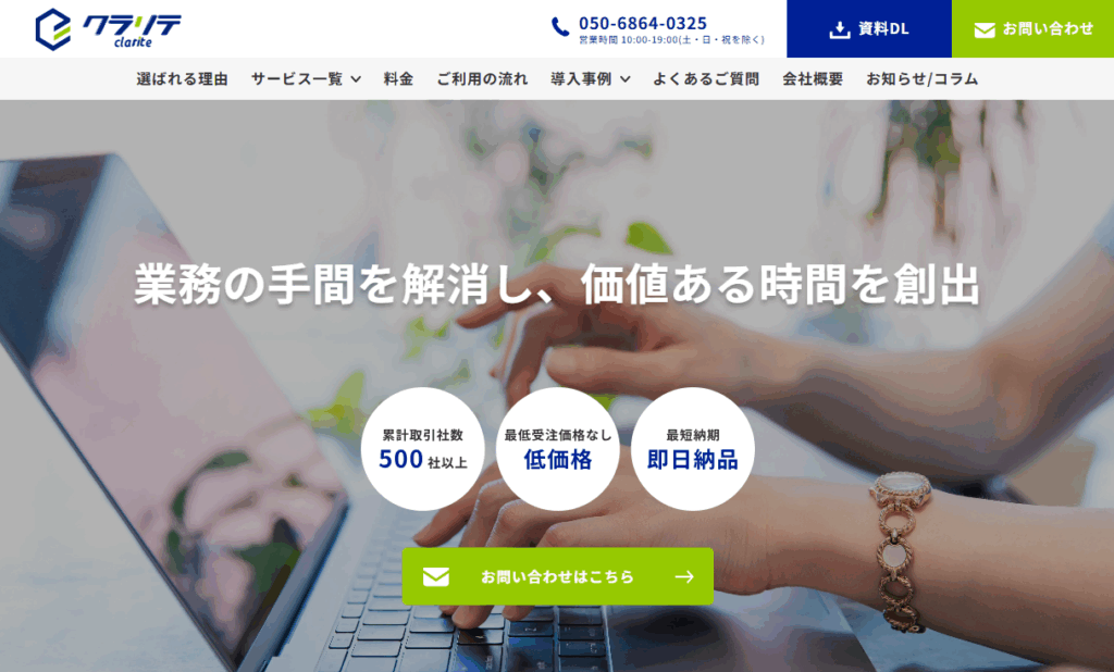 クラリテは、お客様から「急ぎの案件も安心して任せられる」と評価されるスピーディーな対応力が強みです。最短即日の納品も可能な体制で、締め切りが迫ったタスクにも迅速に対応します。