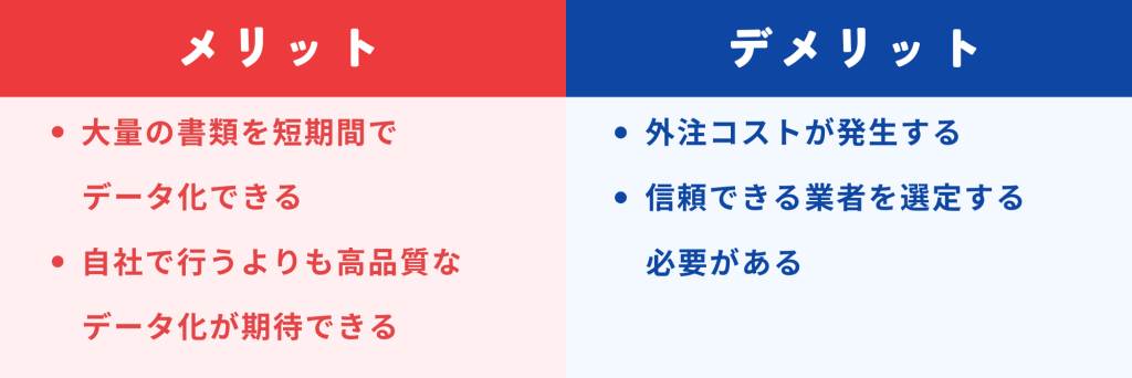 外注のコストが発生する点や、業者によってサービス内容に違いがある点がデメリットです。