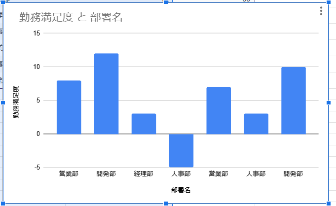 1.部署名と勤務満足度の列を選択します