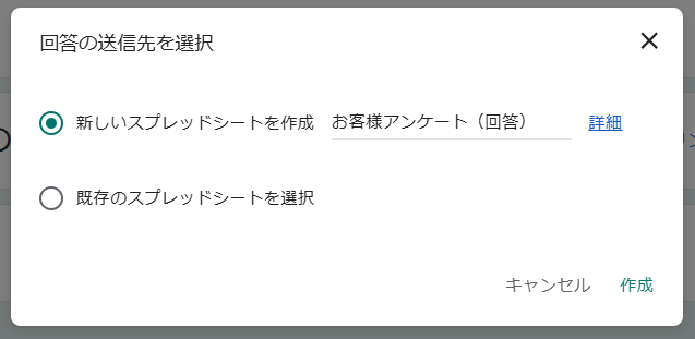 2.「新しいシートを作成」を選択して「作成」ボタンをクリックします